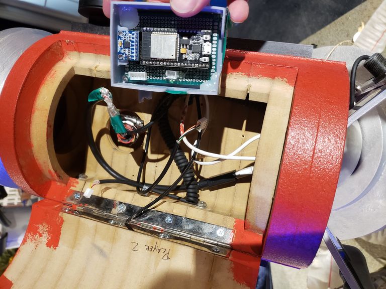 The system consists of a Unity based game controlled by a Bluetooth BLE custom controller. The controller is an ESP32 platform, with a push button and an accelerometer (IMU) for orientation. A hall effect sensor is used to detect and reset the zero yaw position.